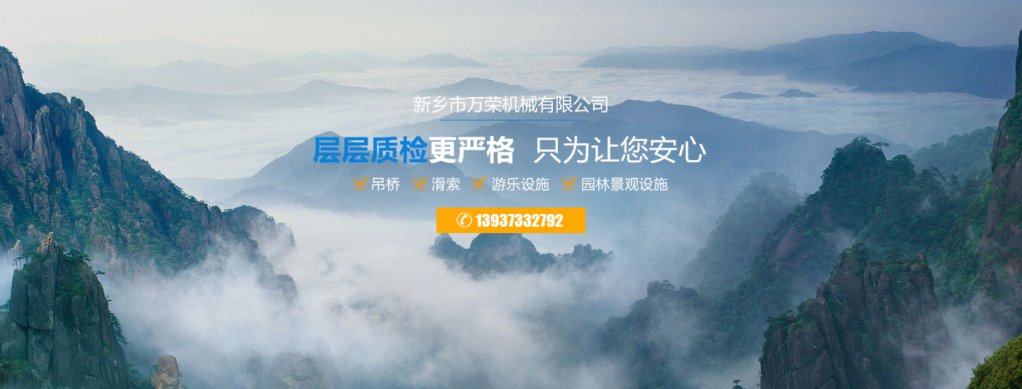 歡迎進入新鄉市萬榮機械有限公司官網!關鍵詞:玻璃水滑廠家,吊橋廠家, 景區吊橋價格, 滑索廠家, 游樂吊橋廠家, 玻璃吊橋, 防腐木吊橋廠商 ,景區吊橋, 滑索設備, 吊橋生產廠家, 吊橋多少錢, 木板吊橋, 吊橋施工廠家